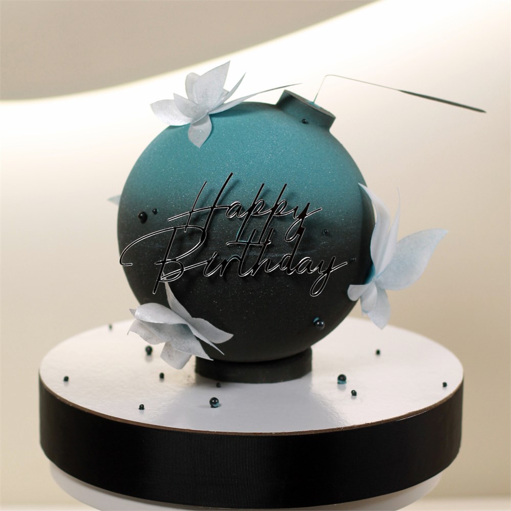 Шоколадный корпус с виде бомбы. В нижней половине начинка на ваш выбор, в верхней полость, в которую можно поместить небольшой презент или записку. Корпус покрыт шоколадным велюром, разбивается деревянным молотком (идет в комплекте). Бабочки из вафельной бумаги