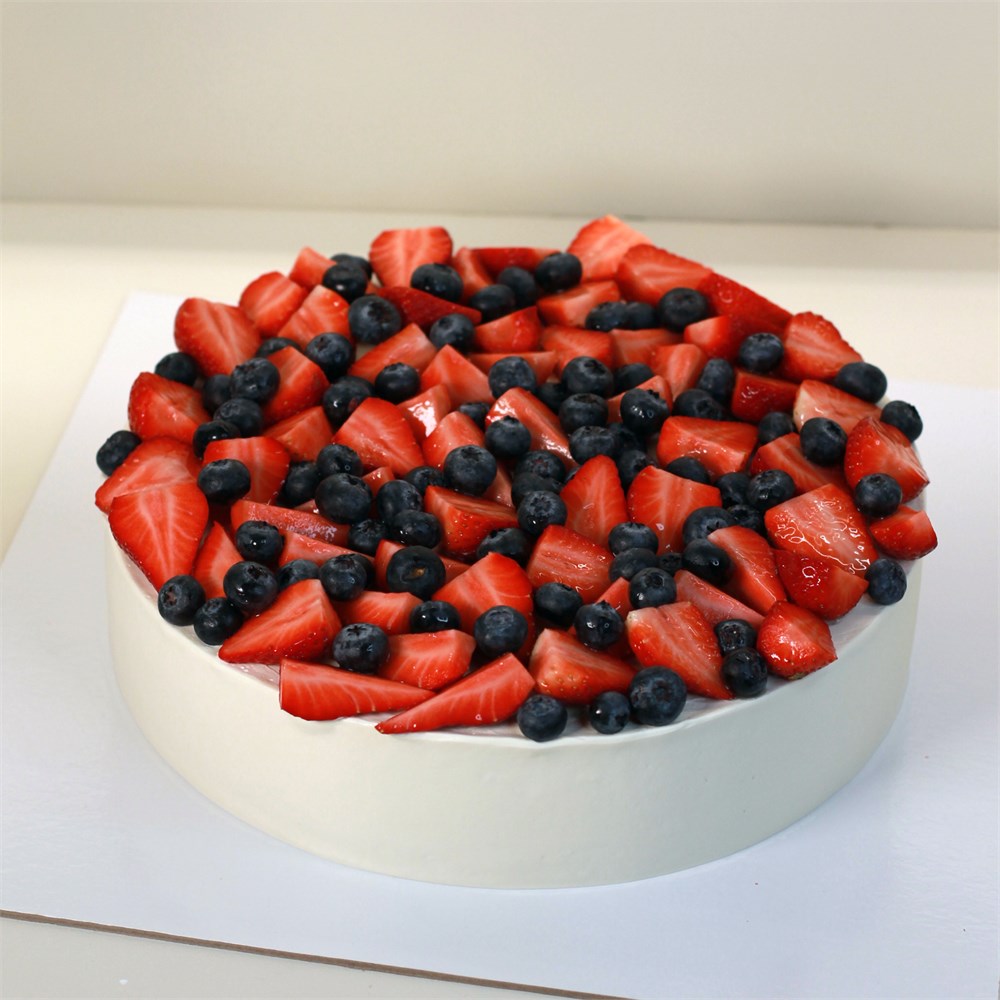 Плоский низкий торт с декором из сезонных ягод