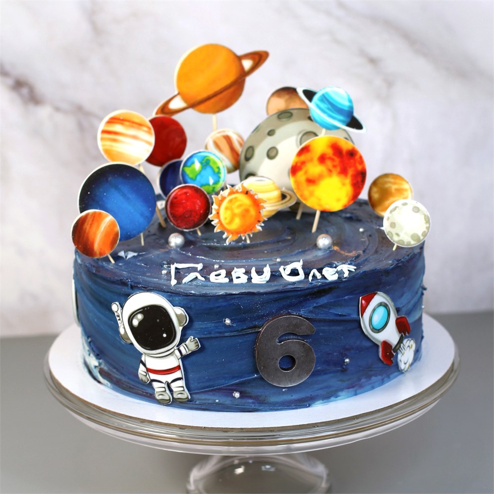 Плоские топперы из сахарной пасты, цифра из шоколада. Градиентный фон из шелкового ганаша