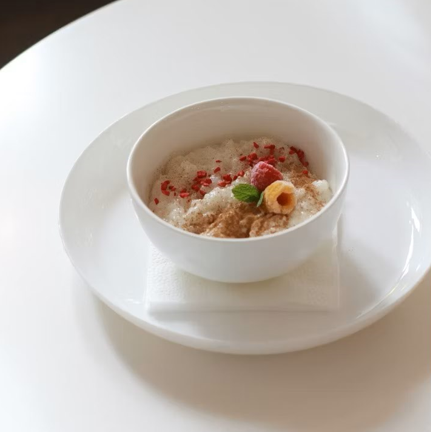 Рисовая каша на коровьем молоке с корицей и малинками-желе